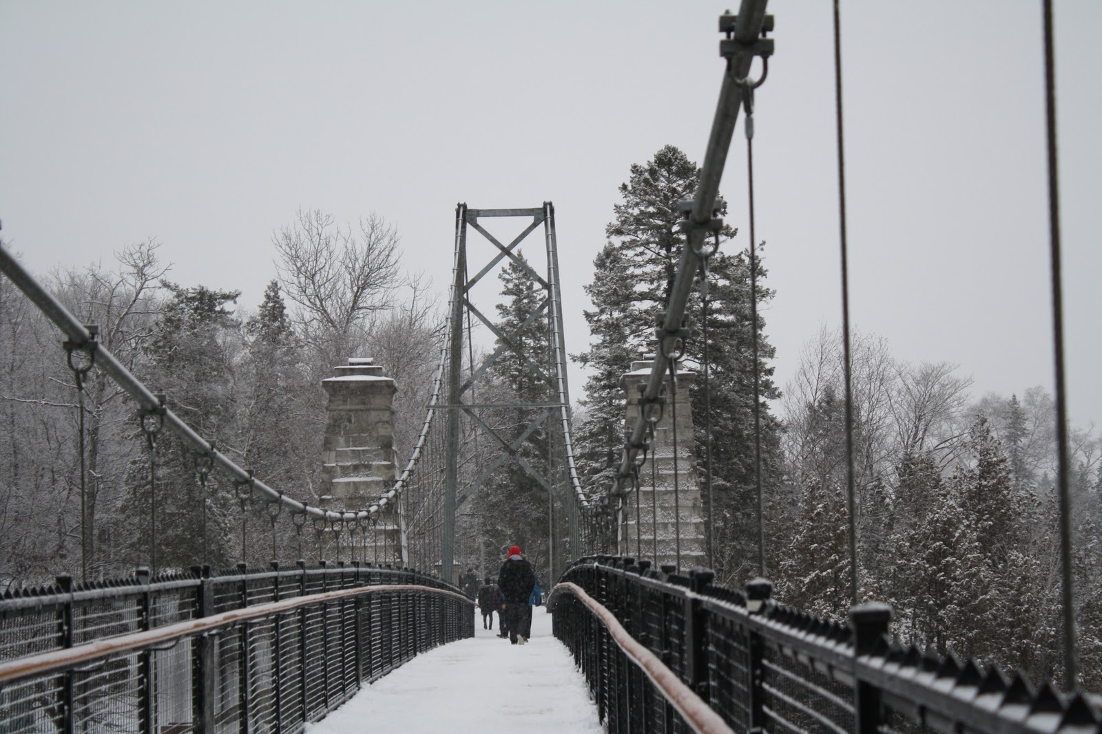 | It's snowing but you can't really see it in the picture. We are walking to the tour bus that will take us to Quebec's countryside. |